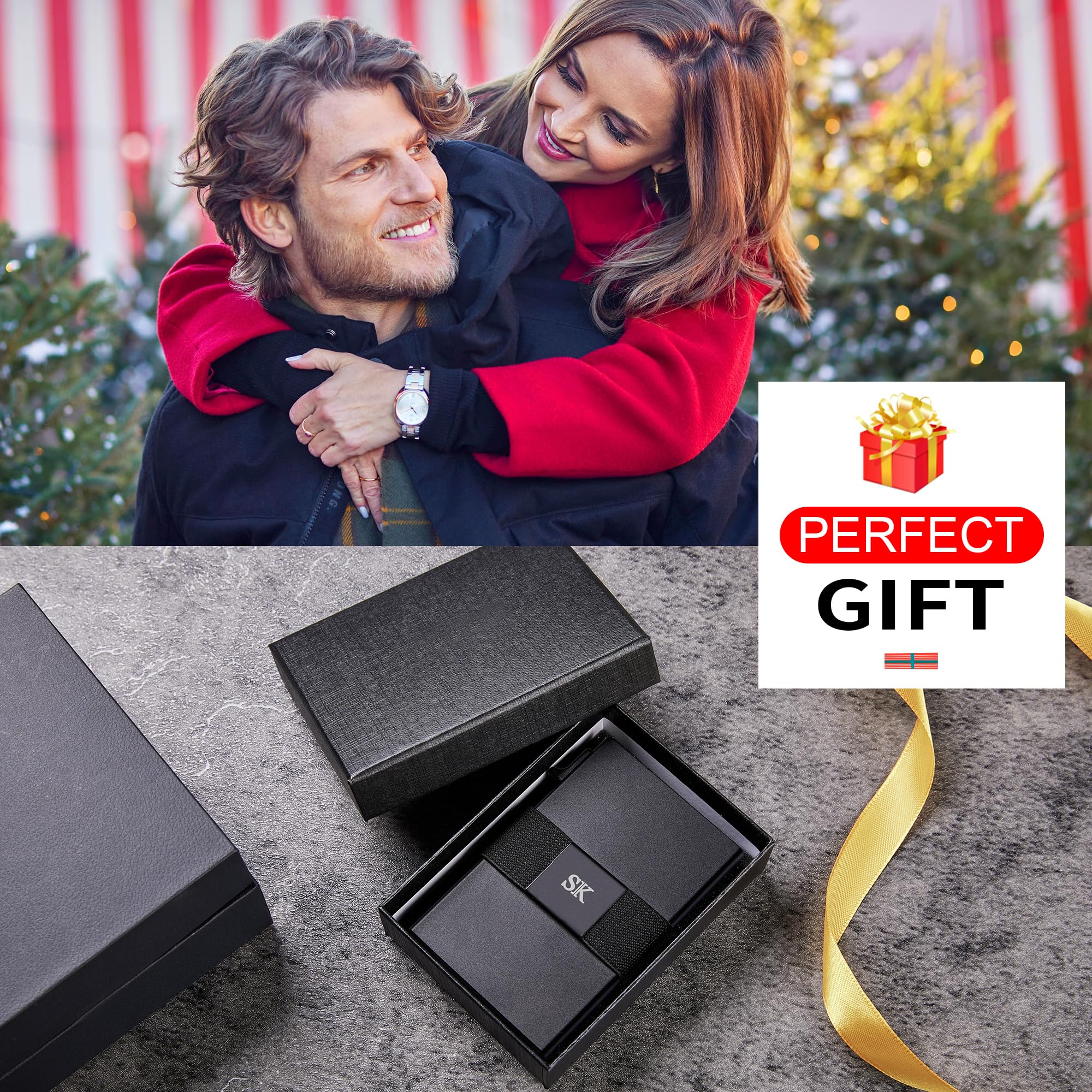 Minimalist Card Holder Wallet For Men, Aluminum Slim Metal Wallet With Money Band, RFID Blocking Up Wallet, Holds 12Cards Plus Cash