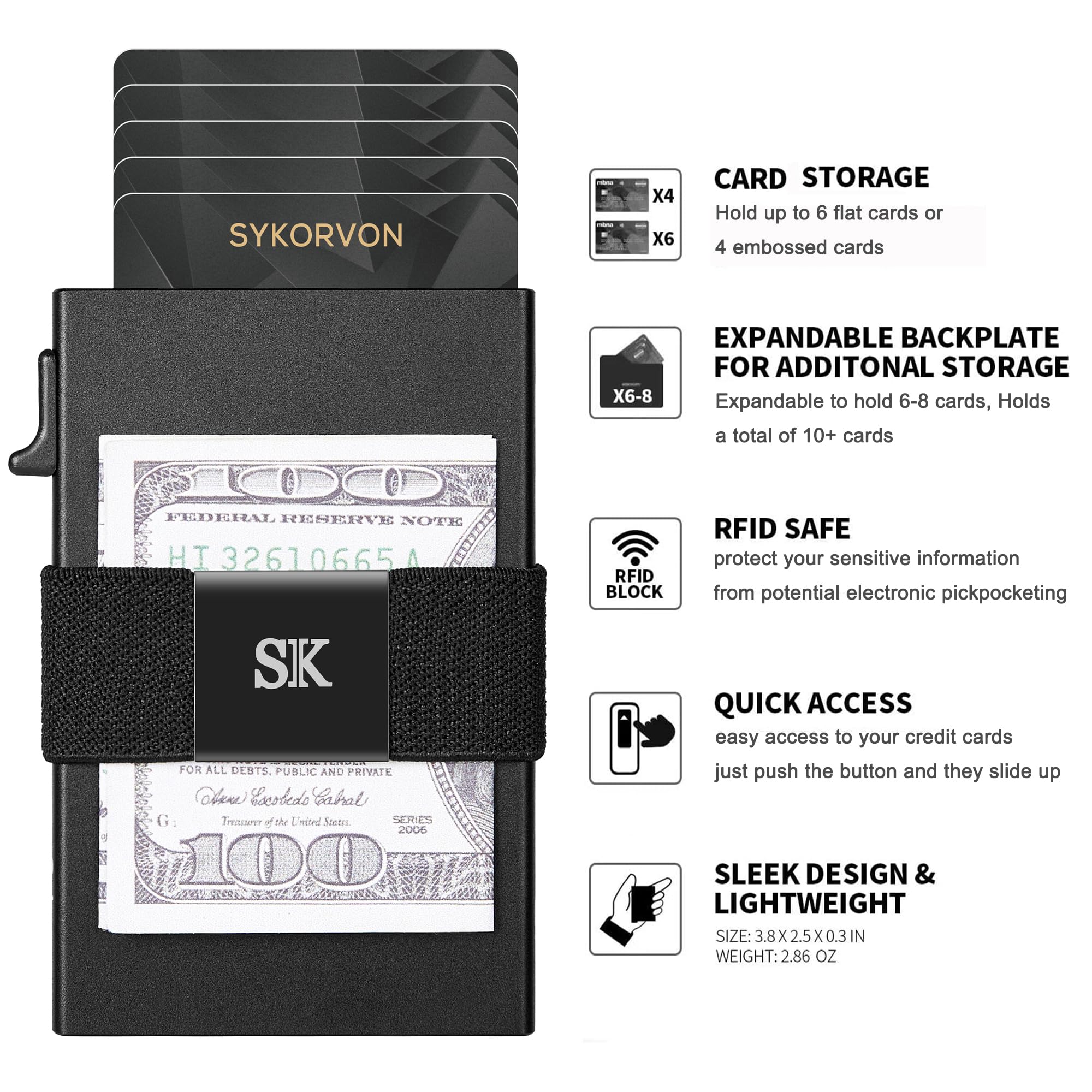 Quick and Easy Card Access: Our mens metal wallet pop up slim minimalist features a unique pop up wallet card... Read more